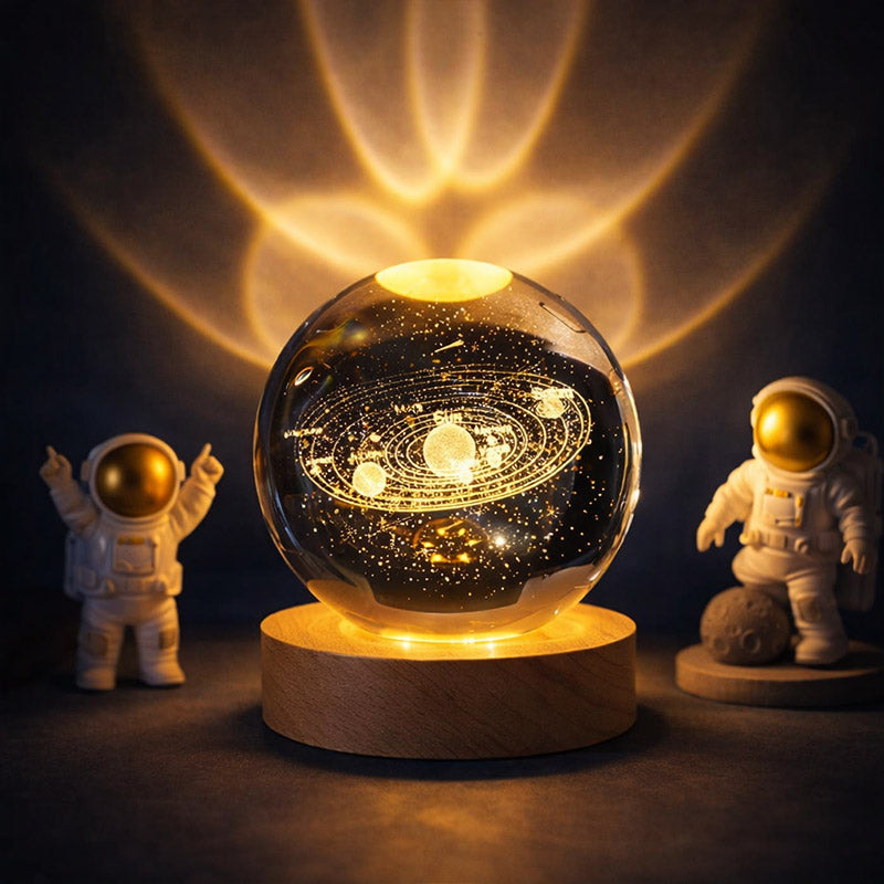 Illuminate your space with celestial wonder using this exquisite 3D Crystal Solar System Night Lamp. Meticulously laser-engraved with intricate planetary details, this premium crystal glass piece sits atop a natural wooden base, creating a stunning focal point for any room. The warm yellow LED glow casts a gentle, ambient light perfect for bedside tables, study spaces, or office desks. USB-powered for convenient operation, it seamlessly blends functionality with artistic design. An ideal gift for astronomy enthusiasts, space lovers, and curious minds of all ages, this lamp transforms ordinary moments into extraordinary experiences while adding sophisticated décor to your environment.
