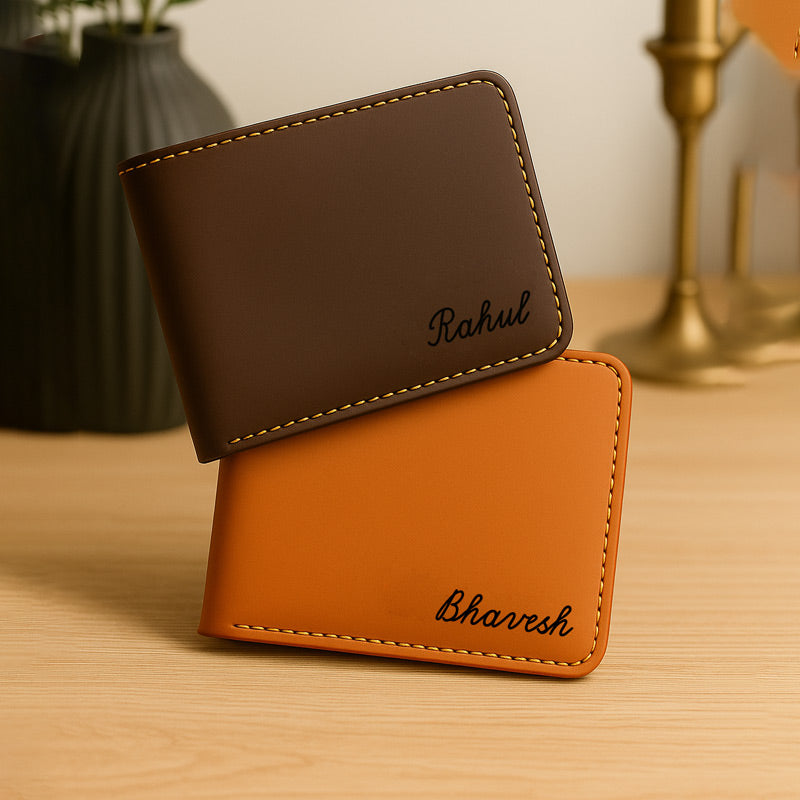 Crafted from premium PU leather, this classic bi-fold wallet offers durability paired with sophistication. Available in rich brown and tan shades, it features multiple card slots and cash compartments for organized storage. Personalized with precision laser-etched name engraving, it adds a unique touch ideal for gifting on birthdays, anniversaries, corporate events, or special occasions. Designed specifically for men, the neat stitching enhances both style and longevity, making it a refined accessory that combines practicality with elegance.