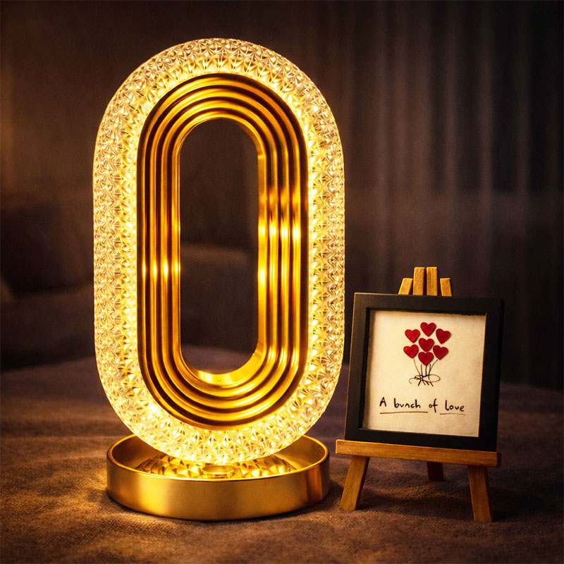 Golden Oval Crystal LED Table Lamp – Luxury Warm Glow Decorative Night Light