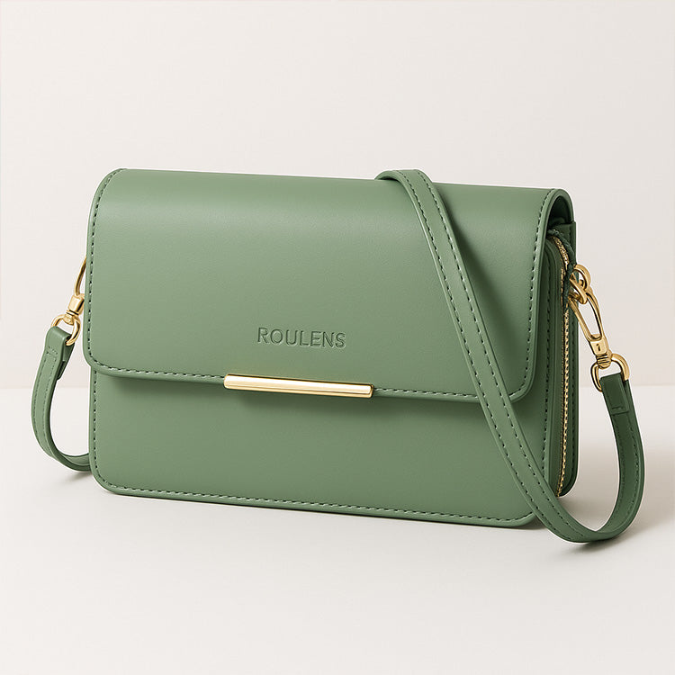 The Rourens Green Matte Leatherette Crossbody Bag is crafted from premium leather, offering durability and a refined matte finish. Designed for travel, it features multiple secure closures including flap, button, snap, and zipper to keep belongings safe. With two well-organized pockets lined in polyester, it ensures convenient access and protection for essentials. This stylish yet practical bag makes an excellent gift for her, blending functionality with elegant design.